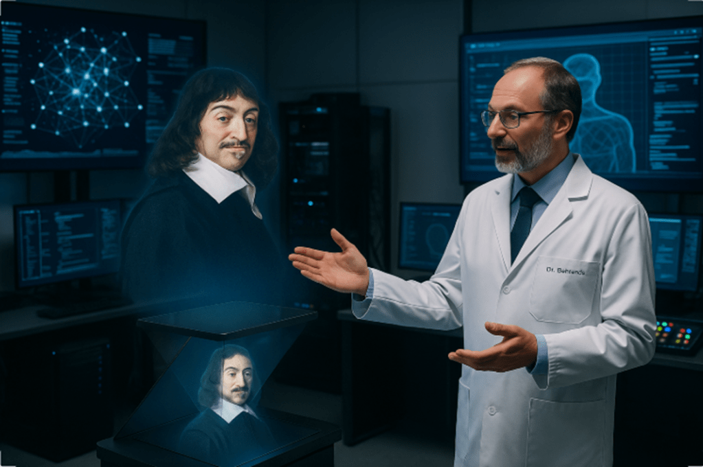 Willkommen. Mein Name ist René Descartes. Ich denke – also bin ich. Heute lade ich Sie ein, mit mir weiterzudenken: über das Wesen von Literatur, über den Zweifel als Erkenntnismethode und über den menschlichen Geist im digitalen Zeitalter.