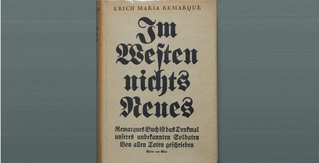 - „Im Westen nichts Neues“ (1929) – Anti-Kriegsroman über den Ersten Weltkrieg aus der Sicht des Soldaten Paul Bäumer.