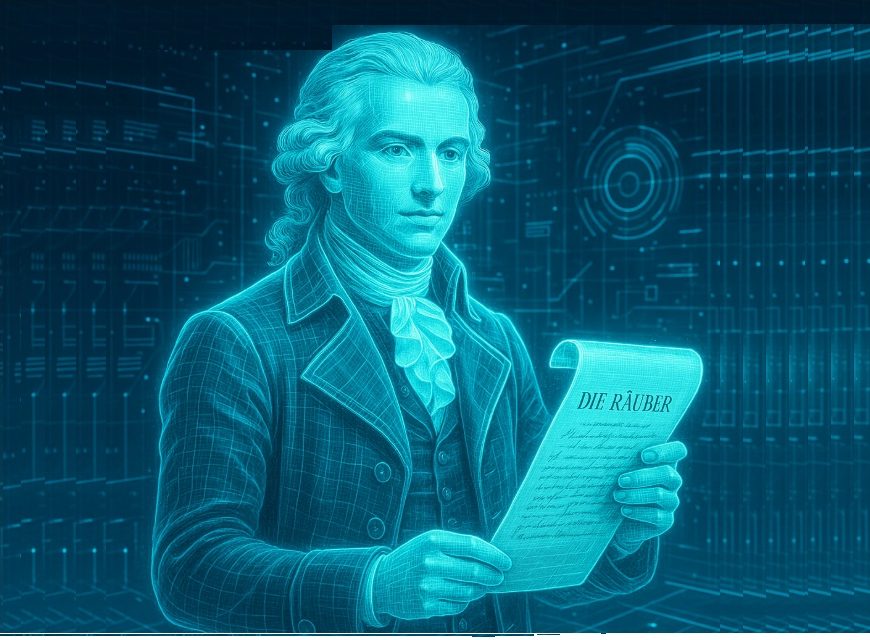 Im Geheimen schrieb er sein erstes Drama Die Räuber, das 1782 in Mannheim uraufgeführt wurde. Die explosive Mischung aus jugendlichem Sturm-und-Drang-Pathos, Sozialkritik und Revolutionsgeist machte ihn schlagartig berühmt – und zwang ihn zugleich, vor der Zensur und der Bevormundung des Herzogs nach Mannheim zu fliehen.