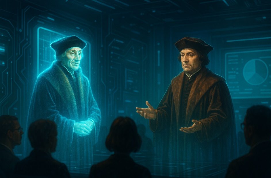 In einer modernen Inszenierung, mit Hilfe von Hologrammen, traten Erasmus und Thomas Morus vor ein Publikum von Historikern, Philosophinnen, Schriftstellern und Ärztinnen. Sie diskutierten die Kraft der Satire, den Wert der Freundschaft und die Notwendigkeit des kritischen Denkens in verwirrenden Zeiten.