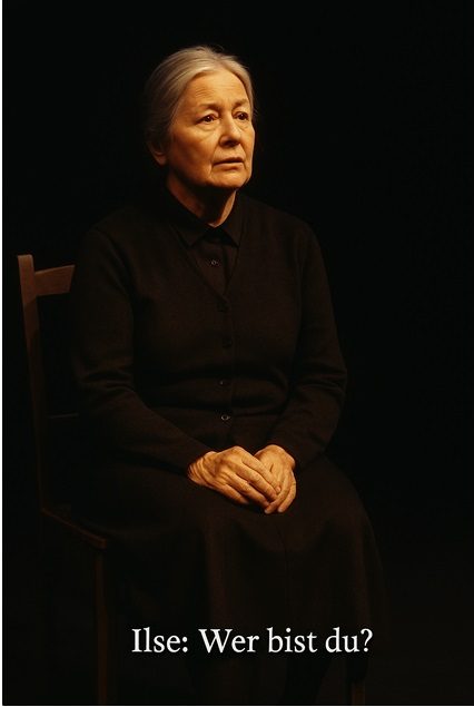 (Kurze Pause. ILSE tritt auf – ruhig, älter, mit klarer Präsenz. Sie trägt ein schlichtes Kleid, vielleicht ein Tuch. Ihre Bewegungen sind bedacht.)